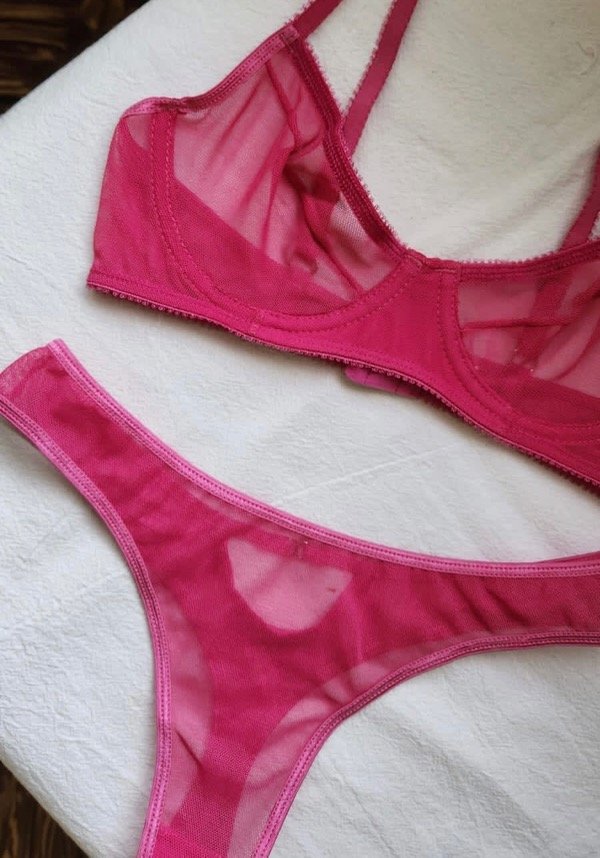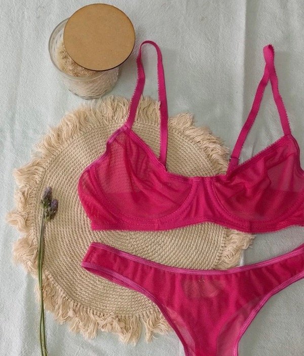 Conjunto de lencería con arco en tazas, confeccionado en microtul premium.