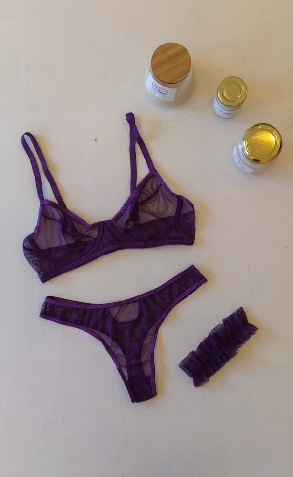 Conjunto de lencería con arco en tazas, confeccionado en microtul premium.